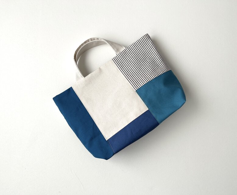 7種類の生地を合わせた遊び心たっぷりのリバーシブルトートバッグです。