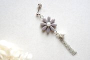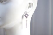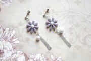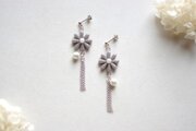 レジンアート お花とコットンパールとフリンジのピアス〈雪女の恋〉