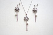 中心の花芯とコットンパールの光沢のある輝きが上品なピアス。