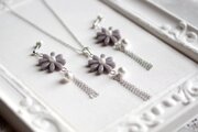 濃いグレーのお花に、コットンパール一粒とフリンジを添えました。