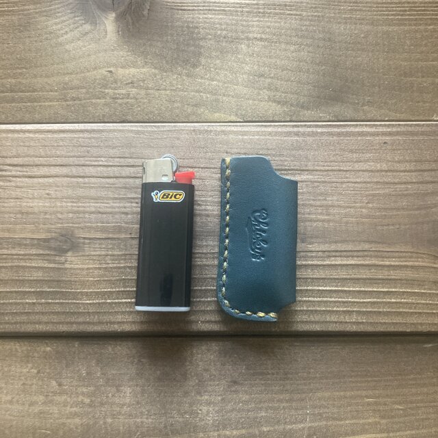 こちらはtype-2(カバーの片側のみ縫って仕上げているタイプ)をベースにBICミニライター(型番J25)に合わせて作ってあります。