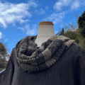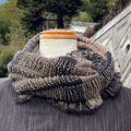 藍と柿渋染めの重ね染めが素敵な作品でした。