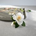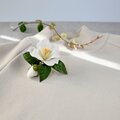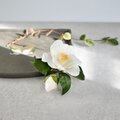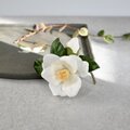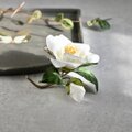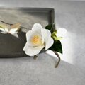 椿の花は、和風のイメージが強いですが、白い花びらをしっとり派手になりすぎない優しい白に染めたので、カジュアルな装いにもエレガントに演出してくれます。