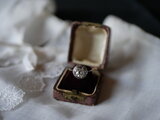 ハンドカットのローズカットダイヤモンドがちりばめられた個性的なアンティークリング。