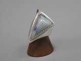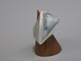 リングのサイズは14号、重さは22g、最大幅は30mm、手のひら側の幅は8mm、金属部分は純銀です。
