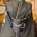 この帯飾りは、深い紺色の中に金色の砂を散りばめたような輝きを持つブルーゴールドストーンと、気品あふれるパールビーズを連ねた、極めて幻想的でシックな逸品です。その輝きは、まるで夜空の星雲のよう。装いに特別な奥行きと洗練を添えます