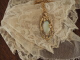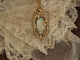 見る角度や光の具合で微妙に色が変わるオパールを見ているうちに、薔薇のモチーフのネックレスを作ろうと思い立ちました。ブラス(真鍮)の黄色が干渉しないように、シルバーの台にオパールを留めてから制作しました。