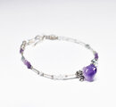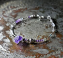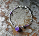 ラフロックアメジストと蓮花シルバー&インドシルバー小花、ストーンビーズ、繊細筒型シルバービーズの華奢なブレス