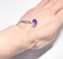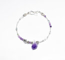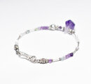 ラフロックアメジストと蓮花シルバーインドシルバー小花、フローライトとハーキマーダイヤモンド、繊細筒型シルバービーズなどを繋いだ華奢なブレスです。