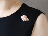 桜のデザインのコサージュやブローチが特に人気です。