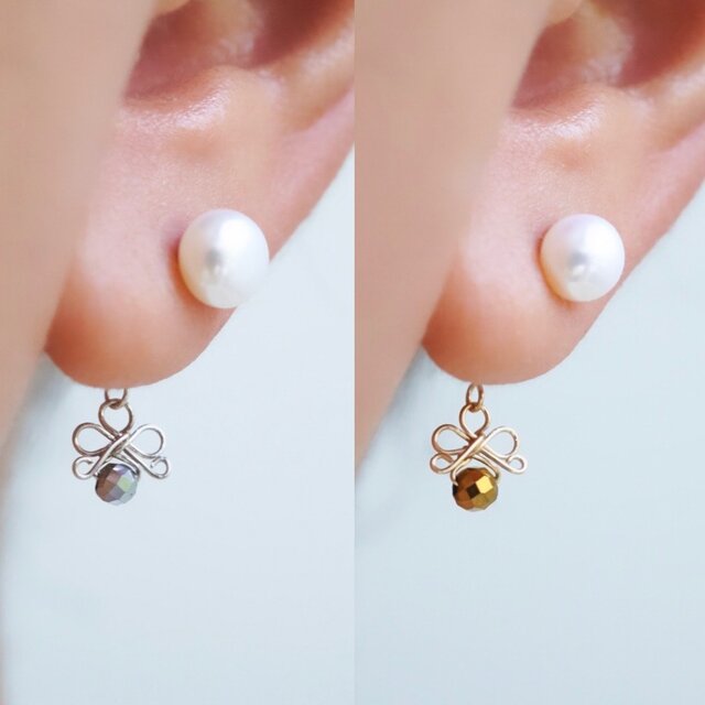 【2wayピアス】「小さなリボン」淡水パール ヘマタイト シルバー ゴールド 天然石 誕生石 冬 フォーマル プレゼントのコピー