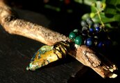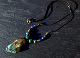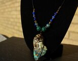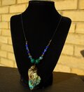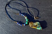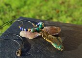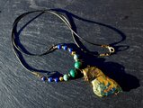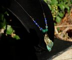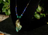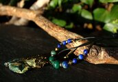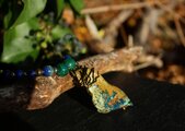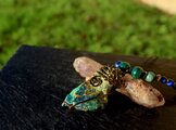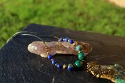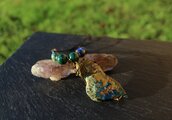 自然の色合いがとても不思議で神秘的なクォンタムクアトロシリカのタンブルをアンティークのワイヤーでシックに巻きました。10ミリのマラカイト、8ミリのカンババジャスパー、6ミリのラピスラズリを組ませました。