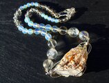 アナンダライトのクラスターに、14ミリのエンジェルオーラクォーツ AAA級、14ミリのナチュラルファントムインクルージョン水晶 AAA級、12ミリの水晶、10ミリのカッティングオパライト、8ミリのオパライト、6ミリの水晶とオパライトで組ませました。