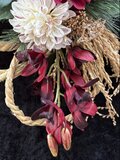 アーティフィシャルフラワーの深紅のダリアと白ダリアが凛と咲く、上品で華やかな和モダンしめ飾り。