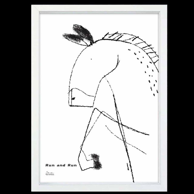 お馬さん 走る気満々 お部屋を元気にするモノトーンホースポスター。