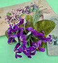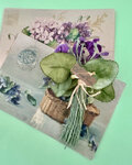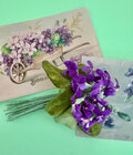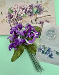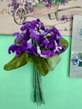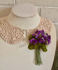 ビロードをパープルの濃淡で染めて作った小さなすみれの花を沢山束ねたコサージュです。