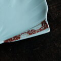 扇子の形状◆竹と笹の葉。青磁赤絵金彩刺身皿 長方皿 花唐草 古民家 昭和初期