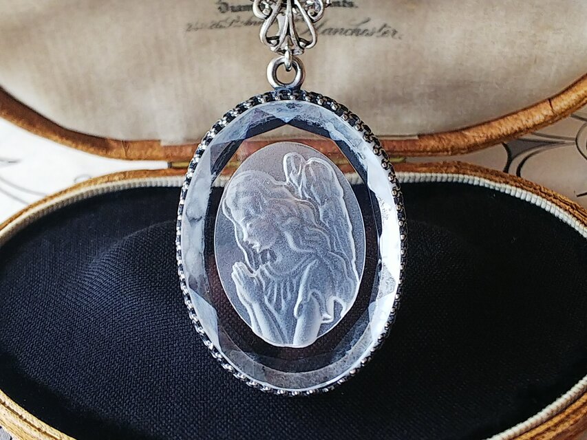 Germanヴィンテージ、約40×30㎜の天使のGlassインタリオを用いてお作りしましたネックレスです。