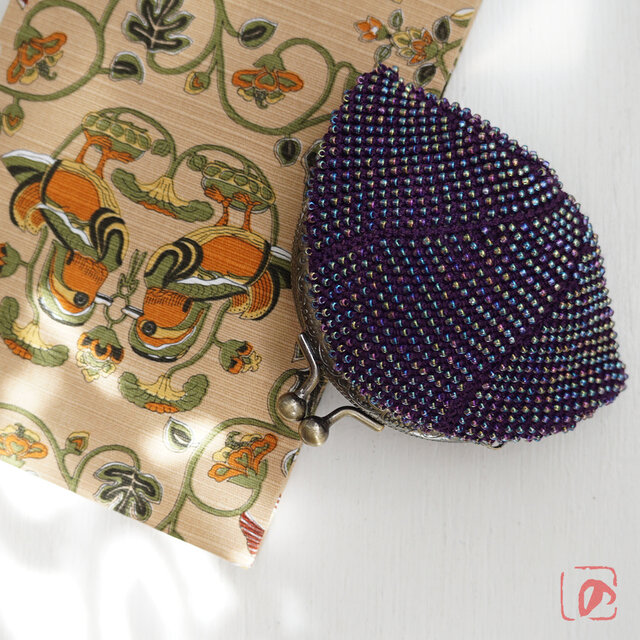 ばあば作♡シードビーズのがま口(こきむらさき・1973)