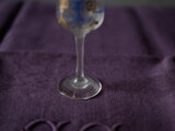 エマイユの金彩とブルーのリボンが可愛い小さなリキュールグラスを見つけました。
