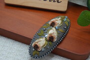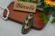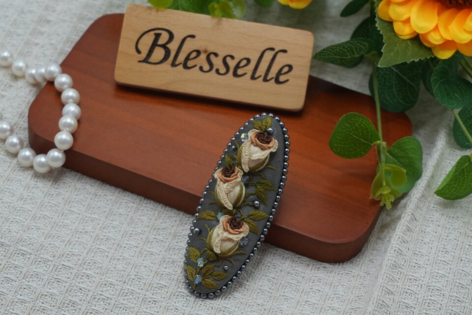 Blesselle 刺繍ヘアクリップ|深みローズの立体刺繍(一点物)