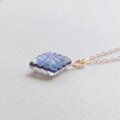 クリスタルにラピスラズリ、ホワイトシェルの三種類の石を張り合わせたトリプレットストーンをシンプルなチャームに仕立てました。シンプルなデザインではありますが石自体の魅力に加え、繊細な彫刻が施してあることからそれだけでも存在感のあるチャームに仕上がりました。