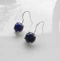 フック枠におさめたピアスです。耳元を美しい瑠璃色が彩ります。
