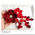 七五三・卒業式に◆大きくて可愛いつまみ細工の髪飾り(下がり付き)◆白×赤×えんじ色の自分でもママでも簡単につけられるつまみ細工