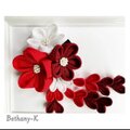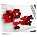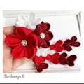 七五三・卒業式に◆大きくて可愛いつまみ細工の髪飾り(下がり付き)◆白×赤×えんじ色の自分でもママでも簡単につけられるつまみ細工