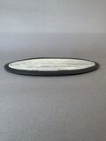 黒土に白い土を荒い刷毛で刷毛目模様をつけました。