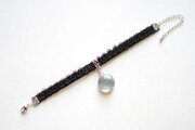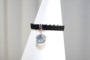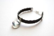 零れ落ちた一粒の水滴のようなレジンを、ベルベットリボンにタティングレースで装飾を施したブレスレットに仕上げました。