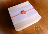 水引は木箱のラッピングをお飾りとしても兼用しています。