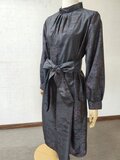 早速のご発送ありがとうございました。本日拝受し、手のかかった丁寧な縫製に見入っております。上品でモダンな色柄もデザインもとても素敵です。長く大事に着用させていただきます。共布のベルトはリボンタイやスカーフとして単品でも活用したいです。また機会がありましたらどうぞよろしくお願いいたします。