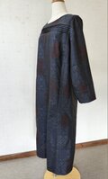 クリスマスSALE 大島紬リメイク フロント、袖口、ピンタックワンピース
