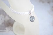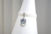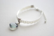 零れ落ちた一粒の水滴のようなレジンを、サテンリボンにタティングレースで装飾を施したブレスレットに仕上げました。