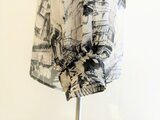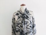 デジタルプリントを施した、細やかなプリント生地を使って、おしゃれ着に使えるリボンタイのシャツを作りました。