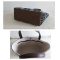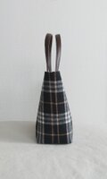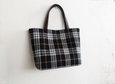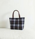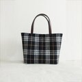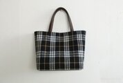 ウール混のブラック地のタータンチェック生地に焦茶のフェイクレザーの持ち手と底を合わせた、秋冬にピッタリなトートバッグです。