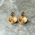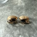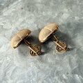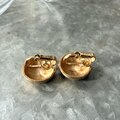ヴィンテージボタンのようなデザインのゴールドトーンイヤリング。