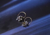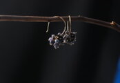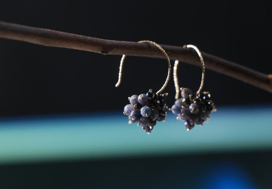 ブルーサファイアとスピネルをひとつずつ留めた、