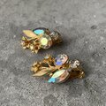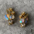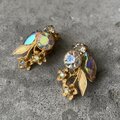 クラシカルな雰囲気のUSAヴィンテージイヤリング。フラワーモチーフのメタルにオーロラ色のビジューがキラキラと輝きます。ヴィンテージならではの上品なデザインで、お顔まわりを華やかな雰囲気にしてくれます。