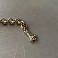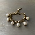 パールが揺らめくレトロな雰囲気のUSAヴィンテージブレスレット。甘くなりすぎない幅広のチェーン。エンドに付けられたドレスを着た女性のチャームが可愛らしいポイント。存在感がありお手元を華やかに演出してくれます。