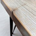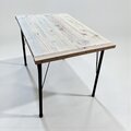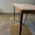 ラフさと温かみを併せ持つ古材に、細身のアイアン脚を組み合わせることで、空間をスッキリと引き締めるデザインに。