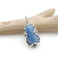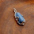 ブルーグレーのコモンオパールを、カンと石枠部分に可愛らしい粒飾りをあしらったペンダントに仕上げました。