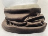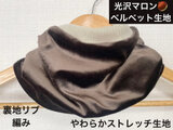 光沢マロンベルベット生地ハンドメイドネックウォーマー、裏地リブ編み、寒さ対策に
