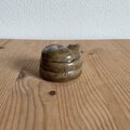 赤土で成形、素焼き後、黄瀬戸釉薬を掛けて1230℃で本焼きしました。