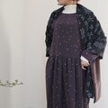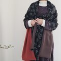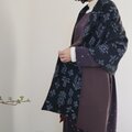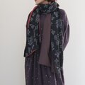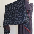 アンティーク着物から作ったショールです。薄手で柔らかな縮緬素材で黒地に花模様。裏地には2種類の八掛けを使用しました。留め具等はありません。肩にかけたり首に巻いたりしてご使用ください。