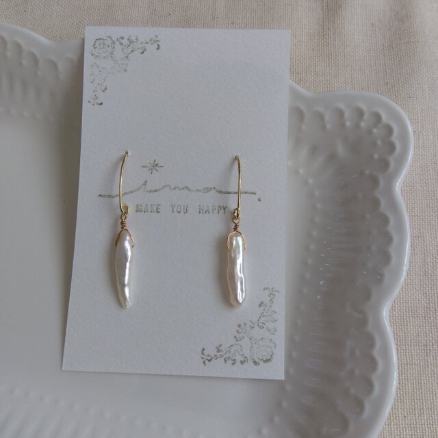 14kgf いびつな形が美しい淡水ケシパールのピアス