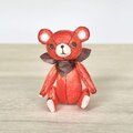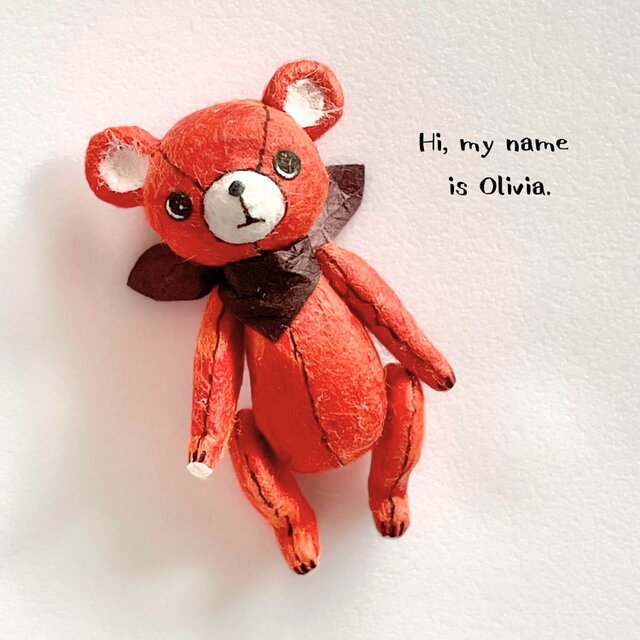 サンライズレッドの和紙で作った、身長5cmのミニチュアテディベア「Olivia(オリヴィア)」です。
