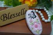 **桜色の花と舞う蝶・立体刺繍ヘアクリップ(8cm)