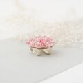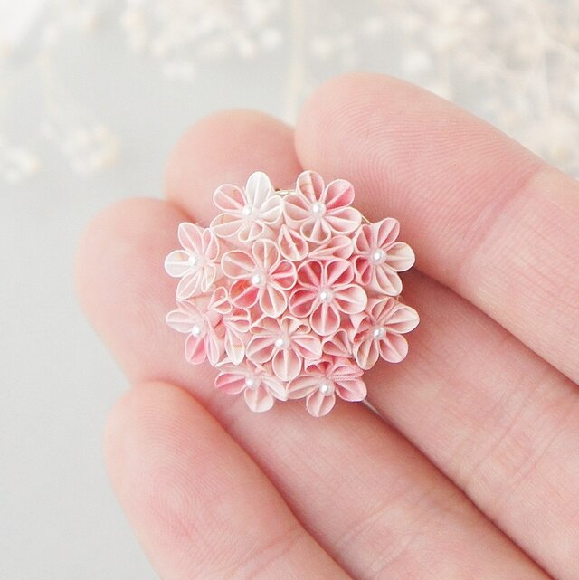 幾重にも重なるピンクのグラデーションは、蕾から満開の花まで、桜の持つ様々な表情を表現。中心にはホワイト樹脂パールをあしらい、上品な光沢感をプラスしました。